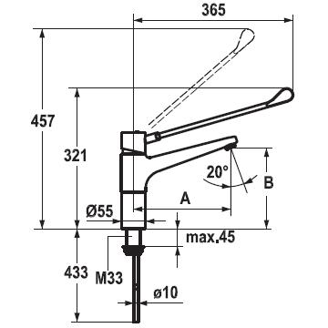 - Einhebelmischer mit extralangem Hygiene-Bedienhebel